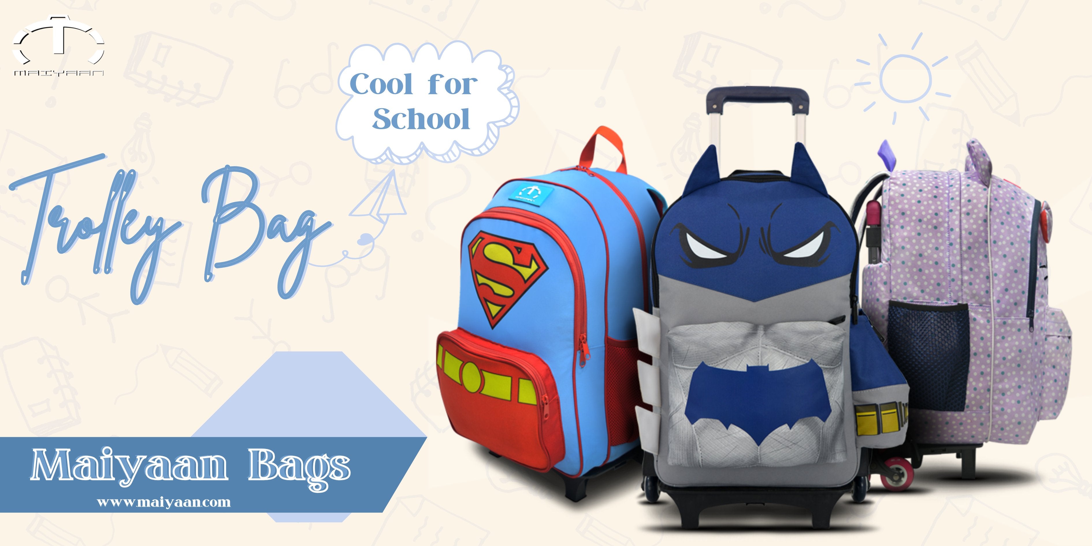 DESCRIPTION: MAIYAAN SUPERMAN TROLLEY BACKPACK is designed for the school kids of classes ranging from 3-8. This Superman print bag has two main openings along with two side mesh pockets and one front pocket. It comes with more space and...